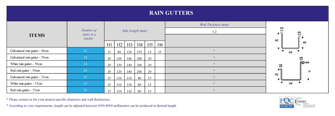 ALYA ARCHI Rain Gutters are designed to ensure efficient rainwater drainage while protecting building structures from water damage. Combining durability, functionality, and architectural aesthetics, these systems provide reliable performance for residential, commercial, and industrial buildings.
